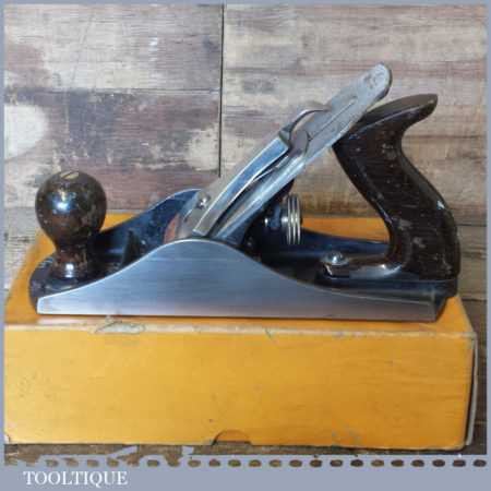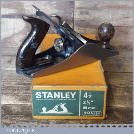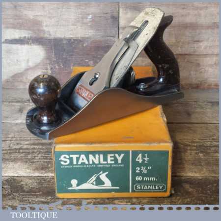 Vintage boxed Stanley No: 4 ½ wide bodied smoothing plane, refurbished ready to use and in good used condition.
