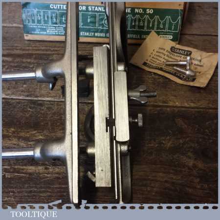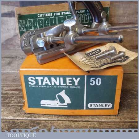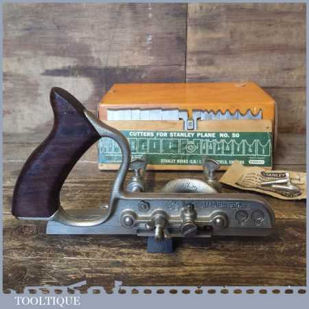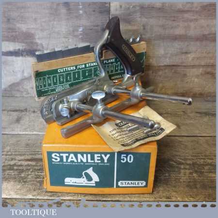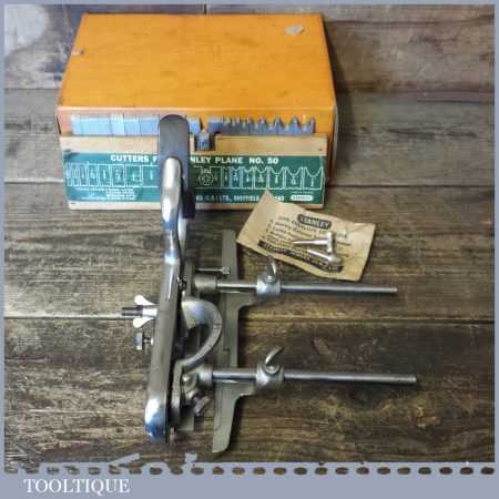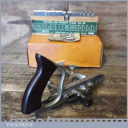 Vintage boxed Stanley No: 50 combination plough plane complete with 17 cutters in little used condition. Note: We do not sharpen the irons.