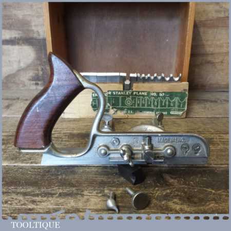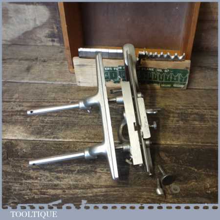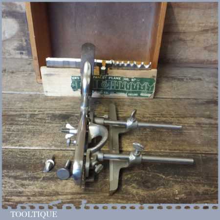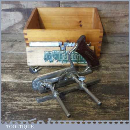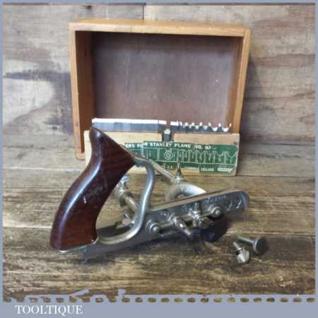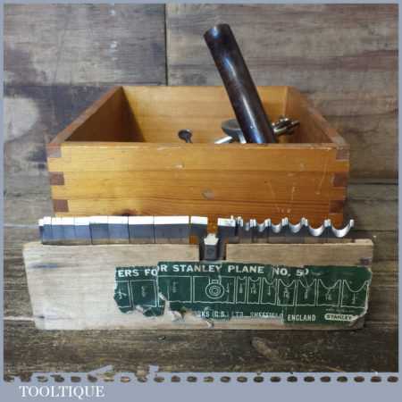 Vintage boxed Stanley No: 50 combination plough plane complete with 17 cutters, fully refurbished and ready for use. The plane is in good condition and all components move smoothly. Note: We do not sharpen the irons. Note: we do not sharpen the irons.