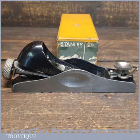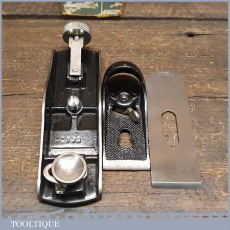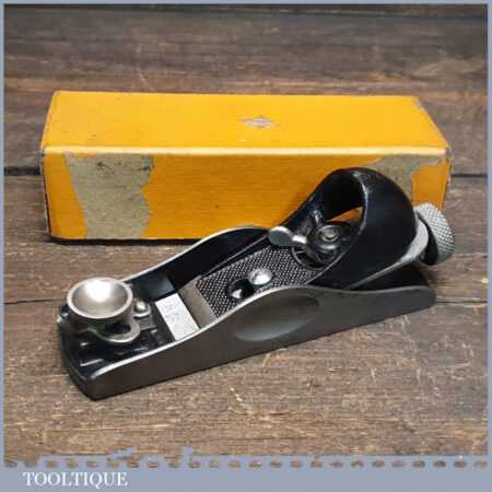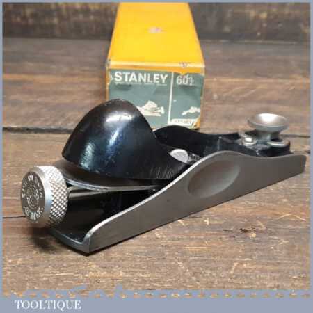 Vintage boxed Stanley England No: 60 ½ low angle adjustable throat block plane, fully refurbished and in good used condition, ready to use.