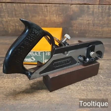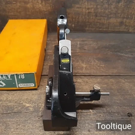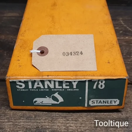 Vintage Boxed Stanley England No: 78 Duplex Rabbet & Fillister Plane, refined ready for use and in good used condition. Note: Although This came in as ‘little used’ condition it has benefitted from having its sole Iron Face being flattened. When refurbishing planes, we do not merely clean them to make them look good, they are restored to a level that ensures this plane is actually ‘in plane to within 0.01mm’ sharpened, honed and all the components are thoroughly cleaned so that they move freely. Our planes are specifically reconditioned to satisfy professional tradesmen who will instantly know the difference between buying one of our planes over general other used ones.