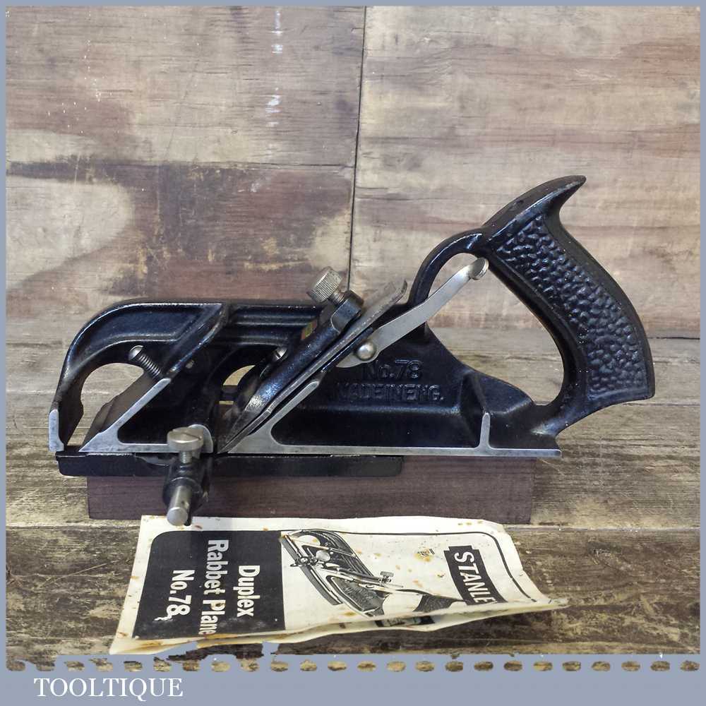 Vintage Boxed Stanley No: 78 duplex rabbet plane in good complete condition. This plane has seen very little use and is sharp ready to use.