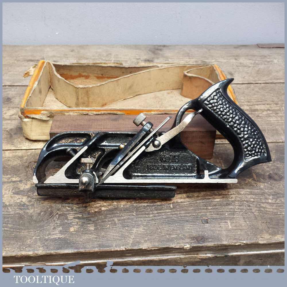 Vintage Boxed Stanley No: 78 duplex rebate plane which is complete and is in good working condition. Note the box is in poor shape but it has done its job protecting this plane.