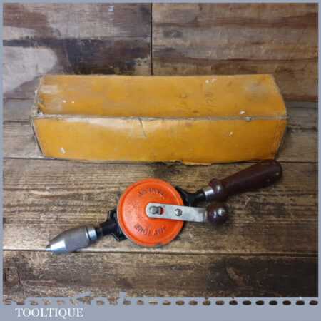 Vintage boxed Stanley No: 805 single pinion egg beater hand drill in good used condition and ready for use.