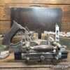 Vintage boxed Stanley Rule & Level Co. USA No: 55 combination plough plane complete with full set of cutters, fully refurbished ready for use and in good used condition. Note: We do not sharpen the irons. Note: I cannot stress the importance of buying these ‘complete’ with the correct screws etc.