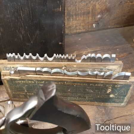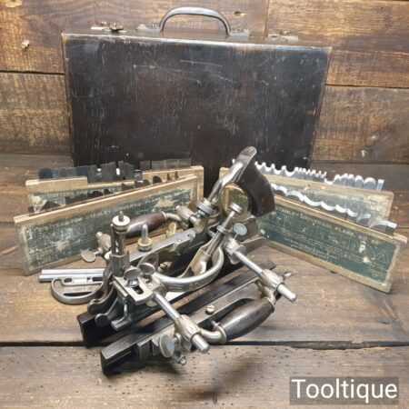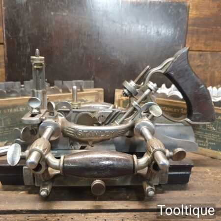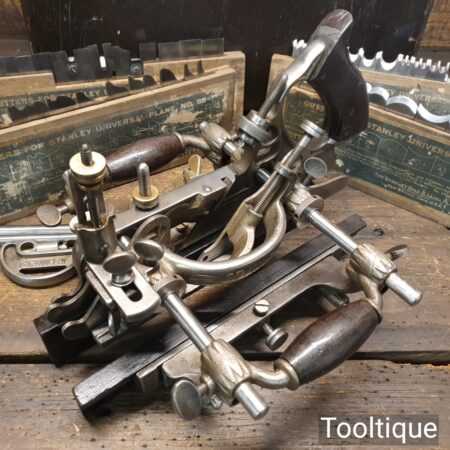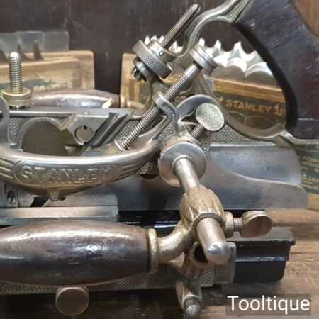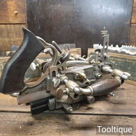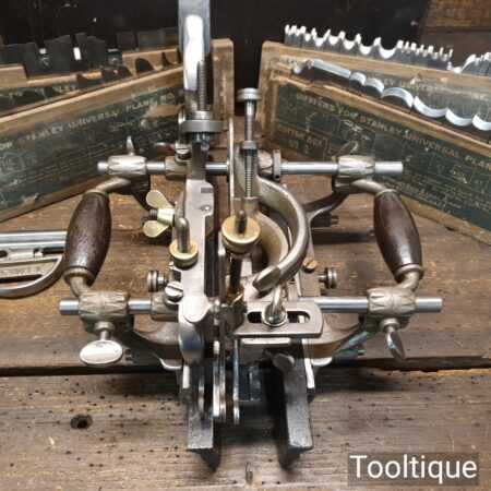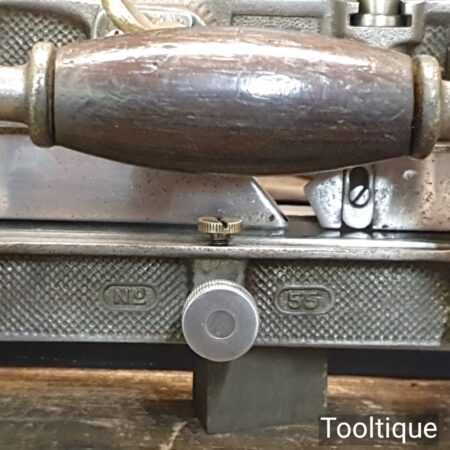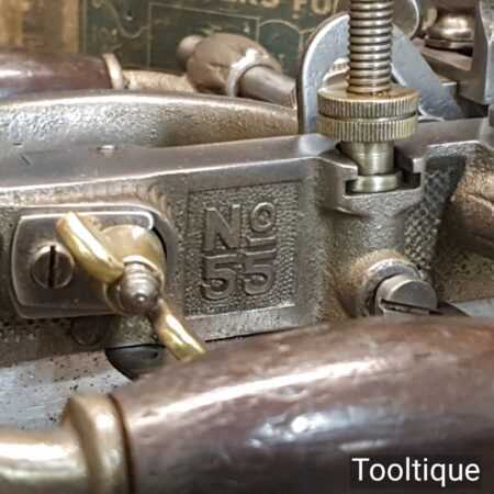 Vintage boxed Stanley Rule & Level Co. USA No: 55 combination plough plane complete with full set of cutters, fully refurbished ready for use and in good used condition. Note: We do not sharpen the irons. Note: I cannot stress the importance of buying these ‘complete’ with the correct screws etc.
