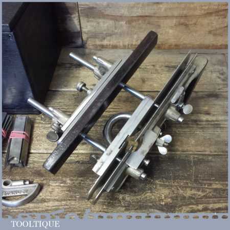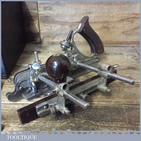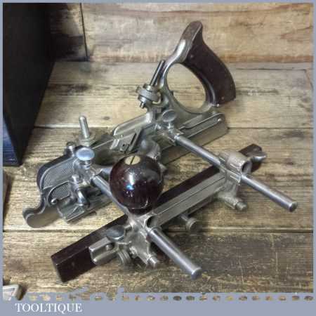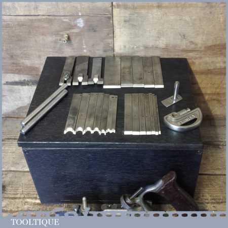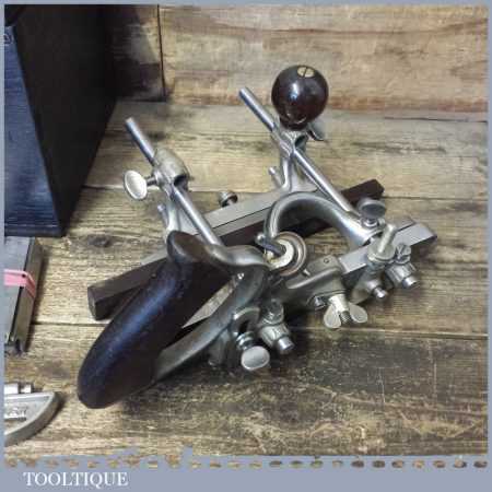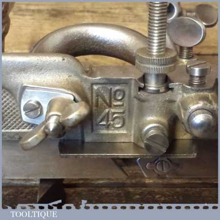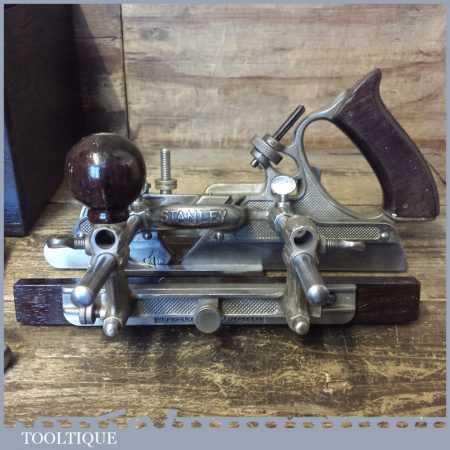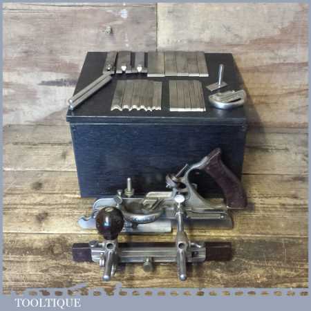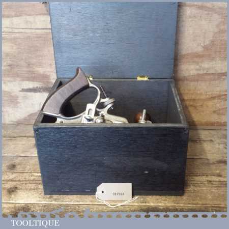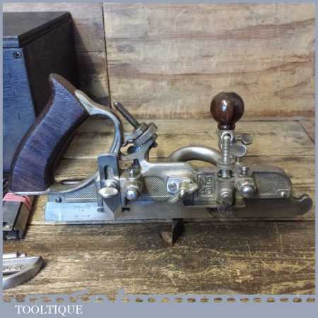 Vintage boxed Stanley Sweetheart USA, No: 45 combination plough plane complete with two boxes of cutters. The plane is in good condition and all components move smoothly. Note: We do not sharpen the irons.