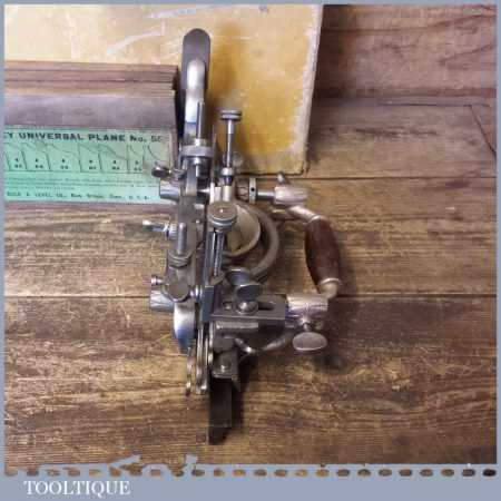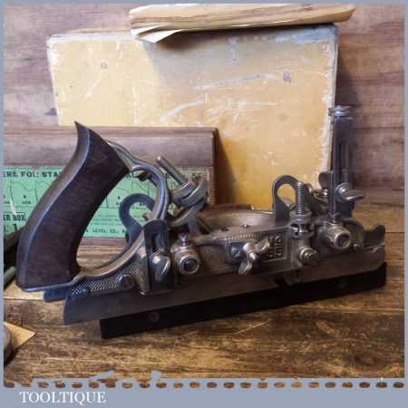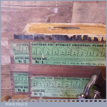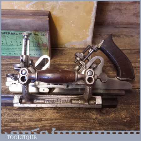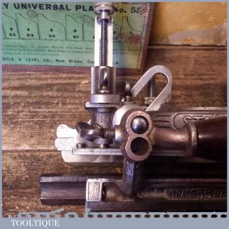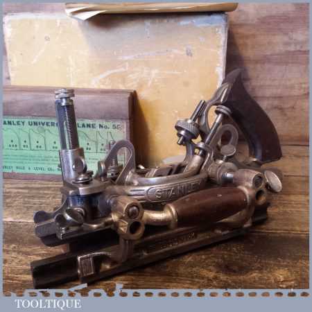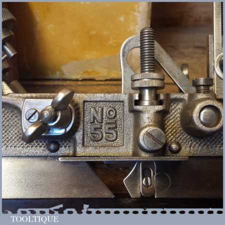 Vintage boxed Stanley Sweetheart USA No: 55 combination plough plane complete with 4 boxes of cutters, fully refurbished ready for use and in good used condition. Note: Good set of clean irons and original box.