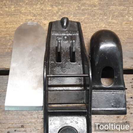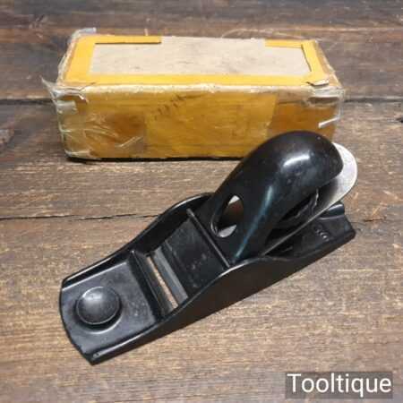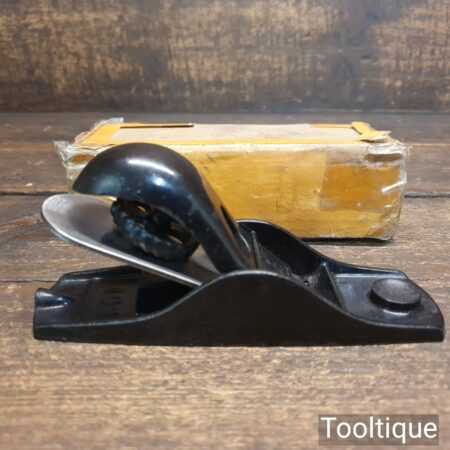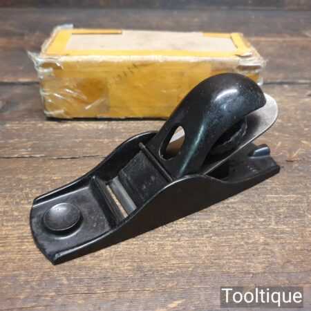 Vintage boxed Stanley USA No: 102 block plane with original iron, fully refurbished ready for use and in good used condition.