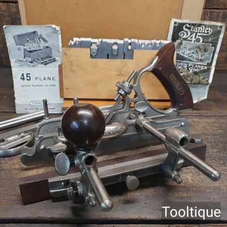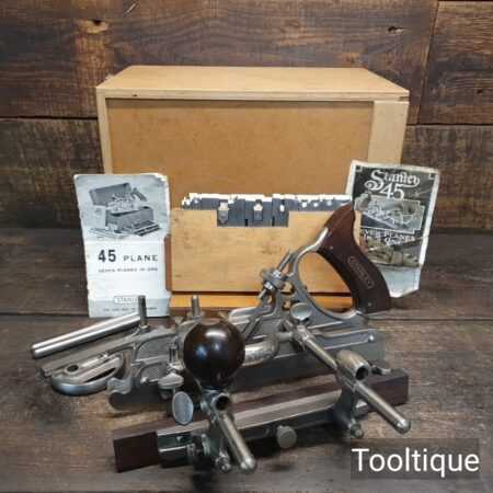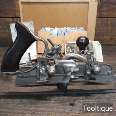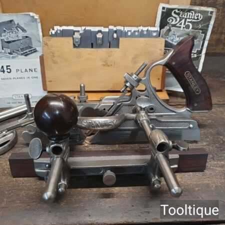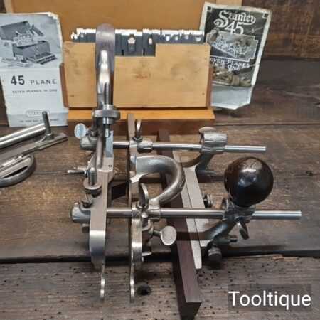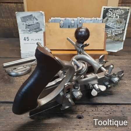 Vintage Boxed Stanley USA No: 45 Combination Plough Plane Complete with a full set of cutters, refurbished ready for use and in good used condition.