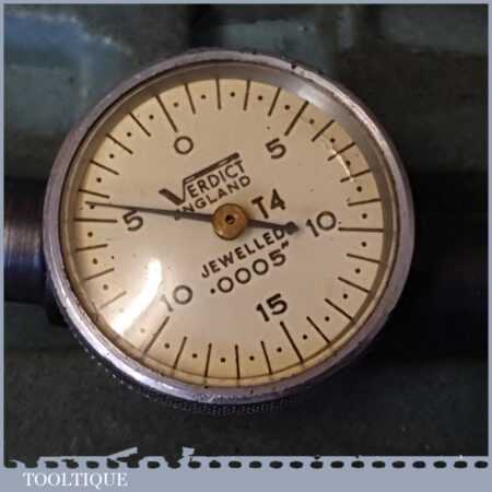 Vintage boxed Verdict jewelled dial gauge in good used condition.