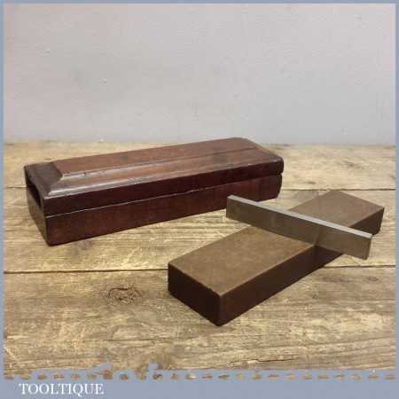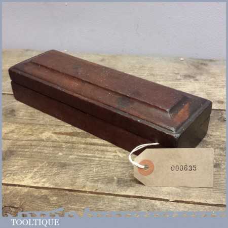 Vintage boxed Washita natural oil stone in a wooden box measuring 8” long by 2” wide. It’s a nice example for the professional craftsman.