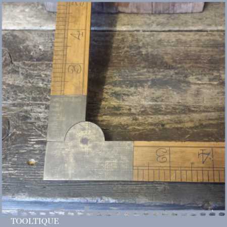 Vintage boxwood and brass 24” folding Taylors calibrated square, in good used condition.