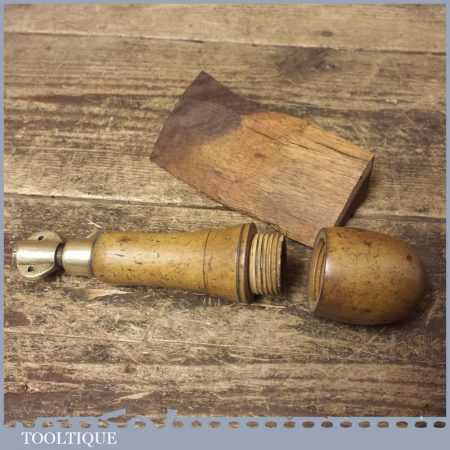 Vintage boxwood and brass multi tool with attachments encased in the screw top handle, in good used condition.