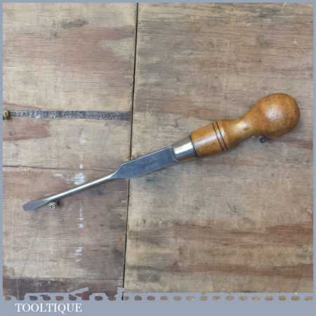 Vintage boxwood handled 9” carpenters turnscrew screwdriver refurbished ready for use and in good used condition. These tools have been water cooled during the reshaping process to ensure they retain their original tempering and will work as they would have originally.