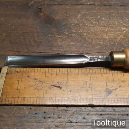 Vintage Brades & Co carpenter’s 1/2” in-cannel gouge chisel with London pattern beechwood handle in good used condition, fully refurbished sharpened and honed ready for use.