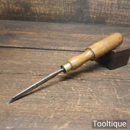 Vintage Brades & Co carpenter’s 1/8” bevel edge chisel with ash handle in good used condition, fully refurbished sharpened and honed ready for use.