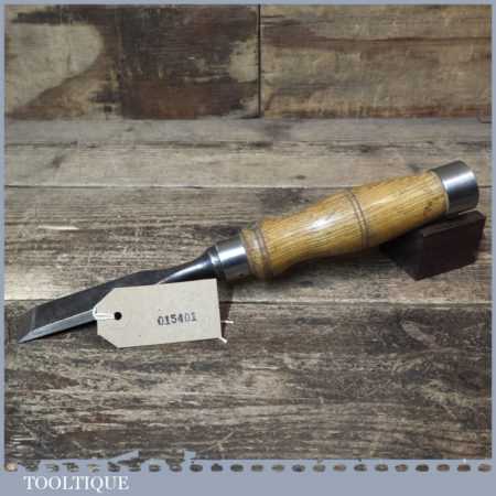 The chisel has been checked to ensure the tang is seated properly and the handle is solid and fit for use. All refurbished chisels are water cooled during the sharpening process to ensure the tempering is not affected. These old cast steel chisels are hand forged and far superior in quality because of the high carbon steel that was used which produces a keener edge, this was also generally used throughout the full length