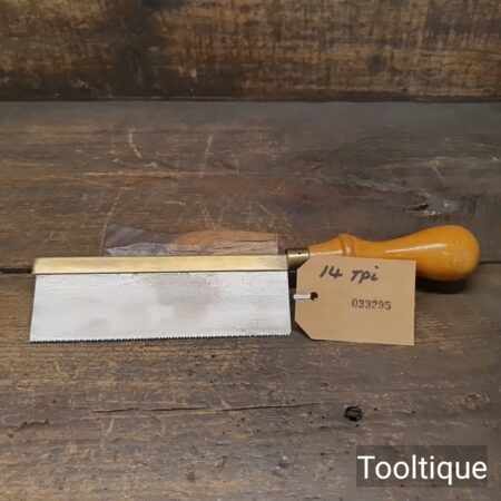 Vintage 14 Tpi Brass Back 6” Gents Saw with a beechwood handle, sharpened Rip ready for use and in good used condition.