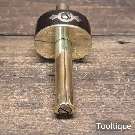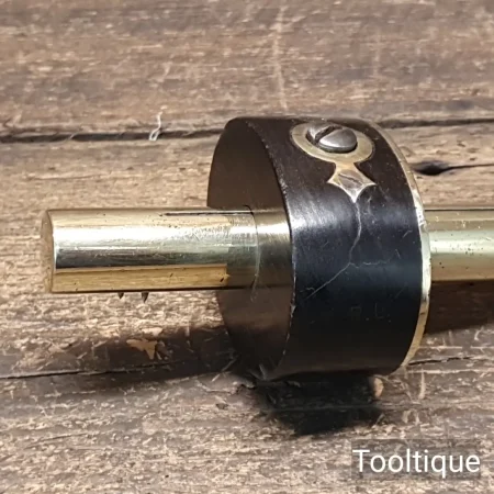 Vintage Brass Bodied & Ebony Carpenters Mortice Gauge with screw adjustment, fully refurbished ready for use and in good used condition.: NOTE: Cosmetic hairline crack in the ebony has been resin filled to regain structural strength, internal anti-rotational plate present, adjusts freely and good length pins.