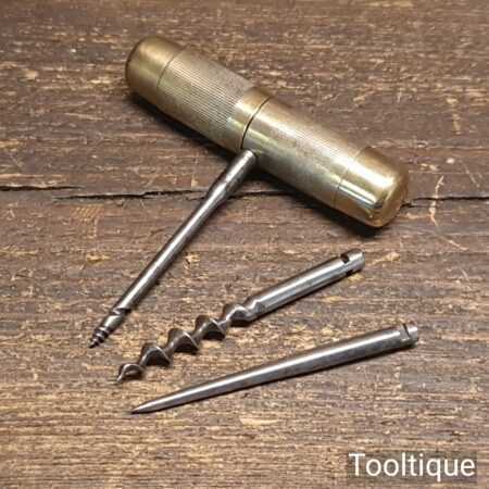 Vintage brass multi tool with 2 No. attachments encased in the screw top handle, in good used condition.