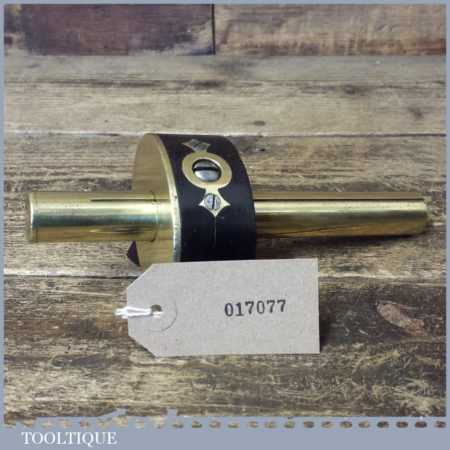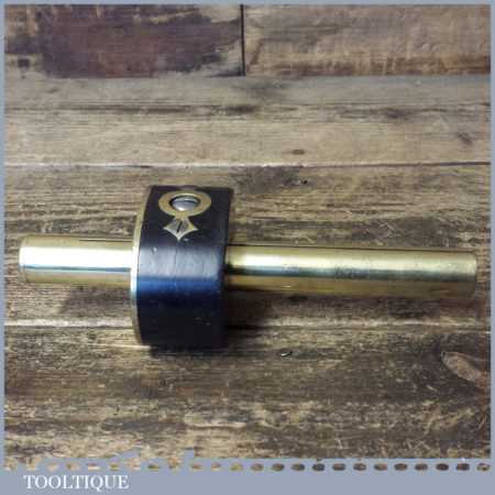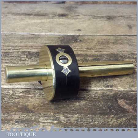 Vintage brass stemmed ebony mortise gauge with screw adjuster, good pins and its internal brass groove guide in good used condition.