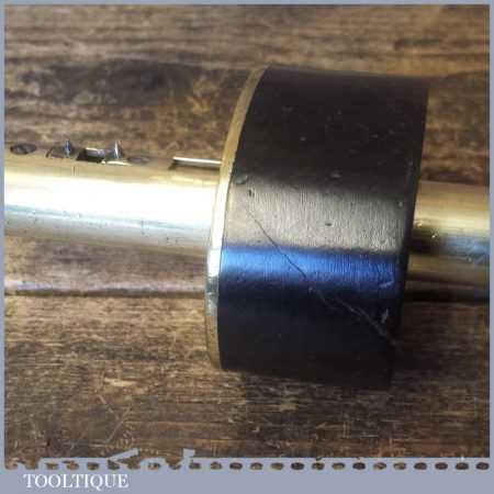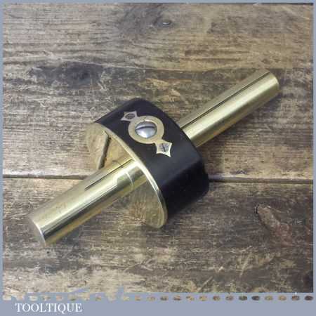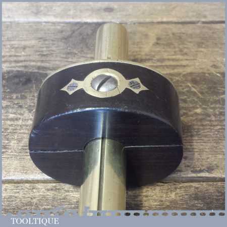 Vintage brass stemmed ebony mortise gauge with screw adjuster, good pins and its internal brass groove guide. Unfortunately, the ebony is cracked (Treated to restore strength) although it doesn’t affect its function but priced accordingly.