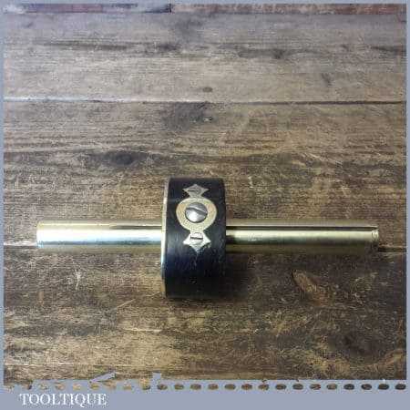 Vintage brass stemmed ebony mortise gauge with screw adjuster, good pins and its internal brass groove guide in good used condition.