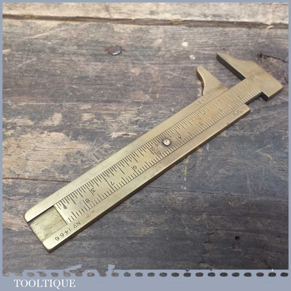 Vintage Brass vernier gauge probably by Rabone No: 1466 with metric and imperial measurements, it’s a handy little tool to have in the workshop.