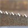The saw has been thoroughly cleaned, jointed, resharpened and set by hand so that all the hard work of getting an old vintage saw right has been undertaken. We do this so that the next sharpening is easier and no more than a quick freshen up would be required. Those who are familiar with sharpening will know this is no small job and requires skill, effort and time to achieve good results.