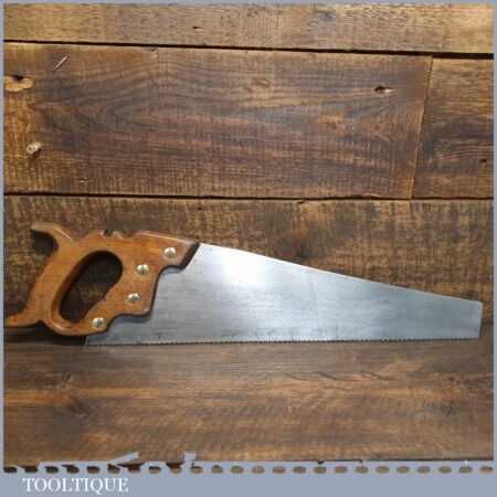 Vintage British Made 18” Warranted Superior cross cut panel handsaw with 9 tpi, fully refurbished and sharpened ready for use.
