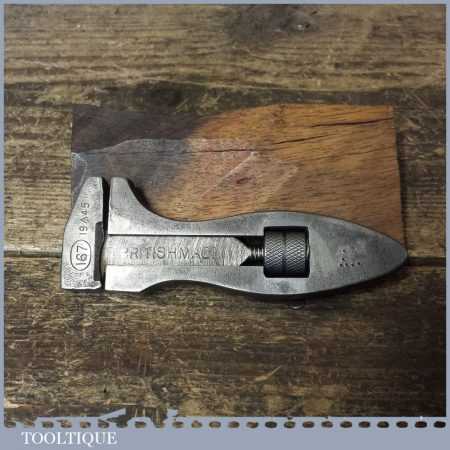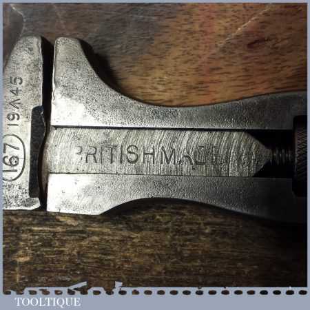 Vintage British made adjustable spanner wrench (stamped with crow’s foot broad arrow and dated 1945) in well used condition.