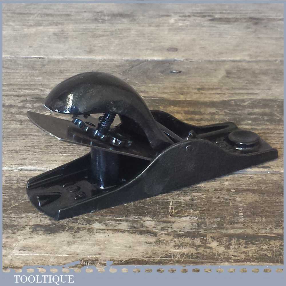 Vintage British made No: 102 block plane fully refurbished ready for use. The plane has been lapped and sharpened and all the parts move freely.