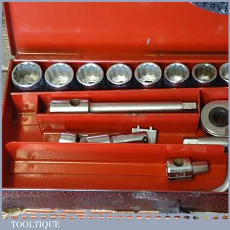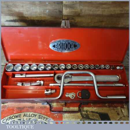 Vintage Britool 26-piece hexagon drive Whitworth socket set in original box and in good used condition.