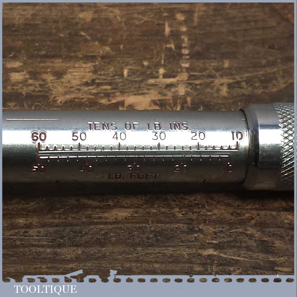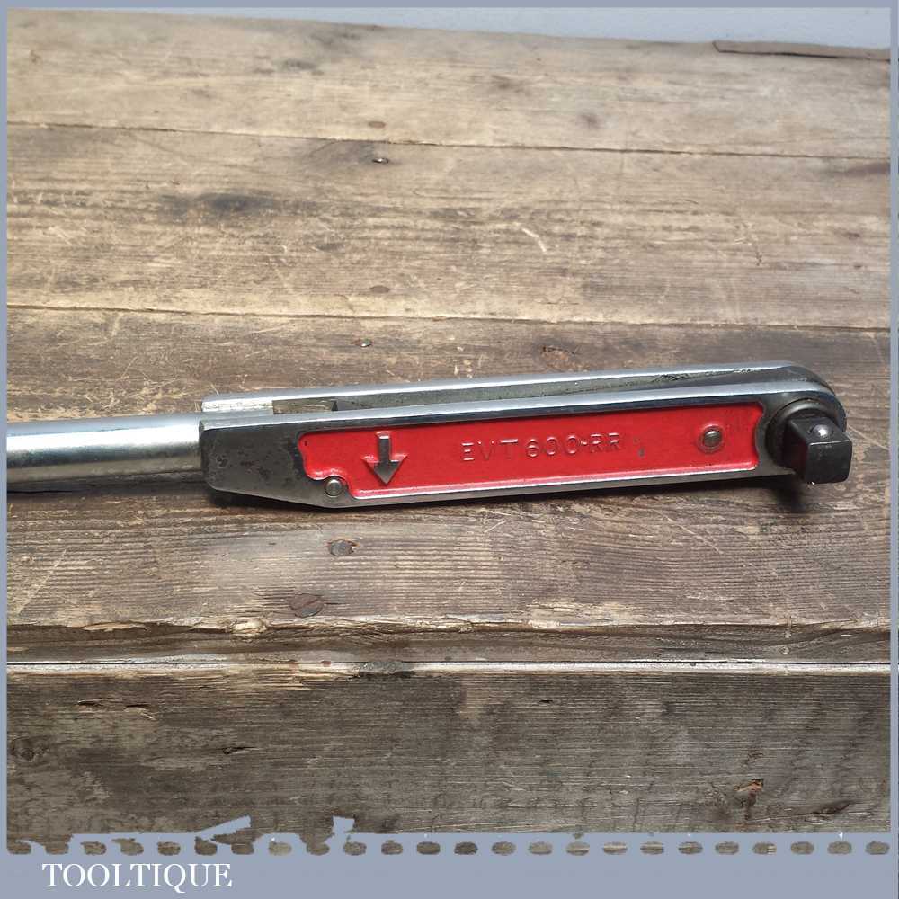 Vintage Britool EVT600RR torque wrench in good used condition. The wrench measures approx 18” long.