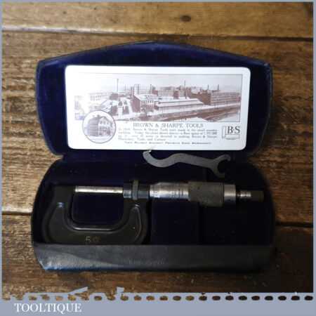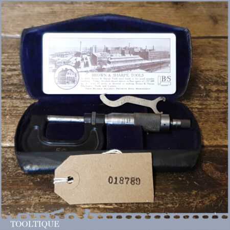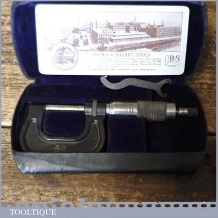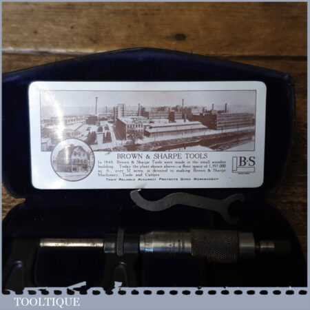 Vintage Brown & Sharpe Mfg Co. USA 0”-1” imperial micrometer in original case and in good used condition.