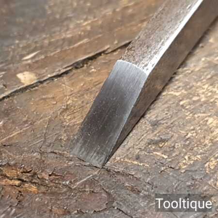 The chisel has been checked to ensure the tang is seated properly and the handle is solid and fit for use. All refurbished chisels are water cooled during the sharpening process to ensure the tempering is not affected.