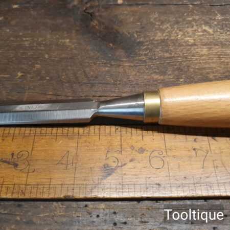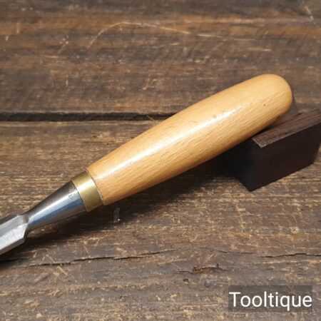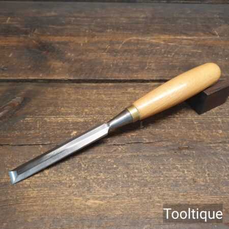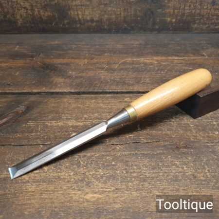 The chisel has been checked to ensure the tang is seated properly and the handle is solid and fit for use. All refurbished chisels are water cooled during the sharpening & flattening process to ensure the tempering is not affected