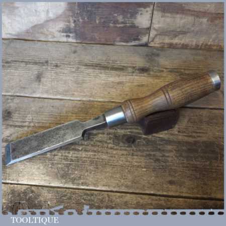 The chisel has been checked to ensure the tang is seated properly and the handle is solid and fit for use. All refurbished chisels are water cooled during the sharpening process to ensure the tempering is not affected. These old cast steel chisels are hand forged and far superior in quality because of the high carbon steel that was used which produces a keener edge, this was also generally used throughout the full length.