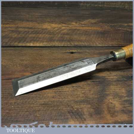 The chisel has been checked to ensure the tang is seated properly and the handle is solid and fit for use. All refurbished chisels are water cooled during the sharpening process to ensure the tempering is not affected.