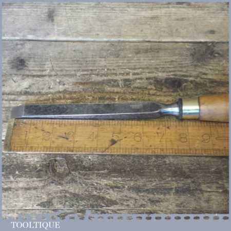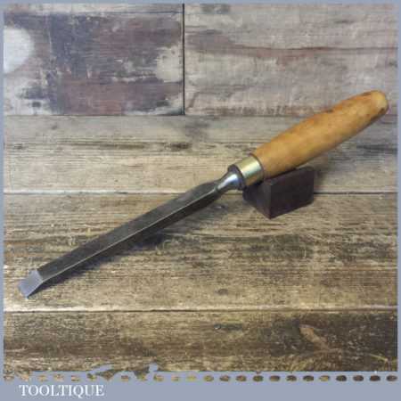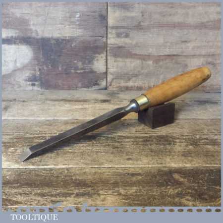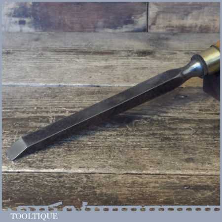 The chisel has been checked to ensure the tang is seated properly and the handle is solid and fit for use. All refurbished chisels are water cooled during the sharpening process to ensure the tempering is not affected. These old cast steel chisels are hand forged and far superior in quality because of the high carbon steel that was used which produces a keener edge, this was also generally used throughout the full length.