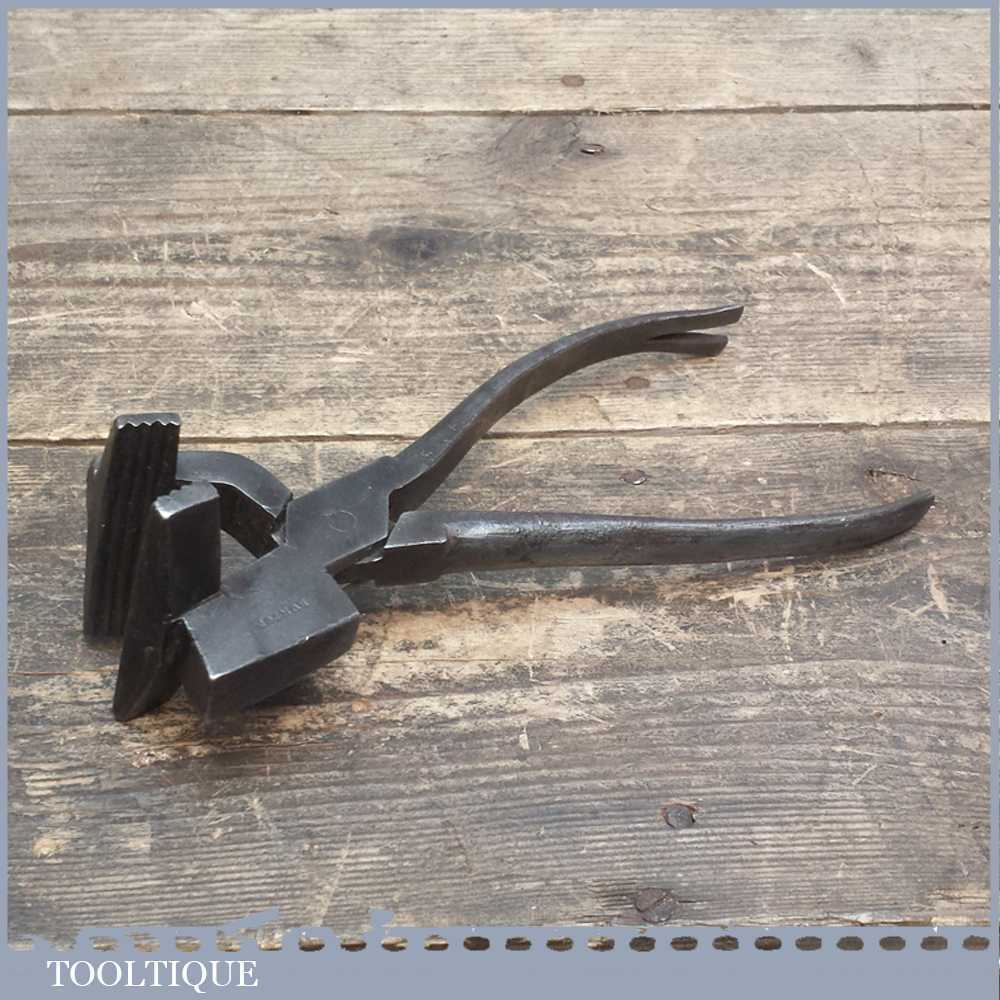 Vintage Burton Upholsterers / Leatherworkers stretch pliers with wide ribbed jaws, it also has a tack lifter and hammer built into the design.
