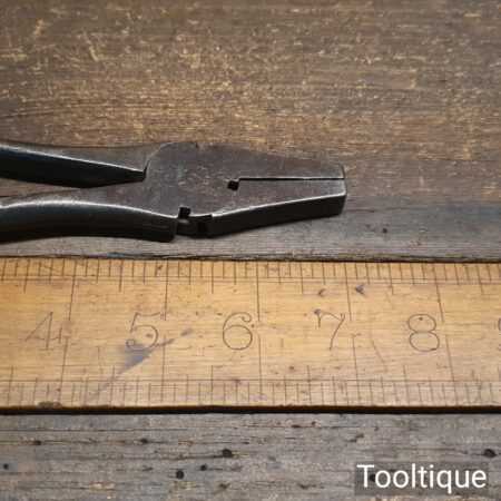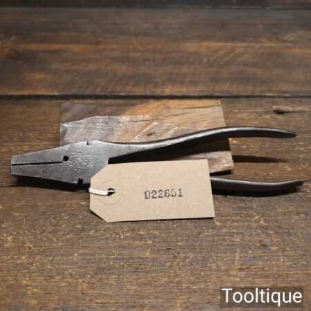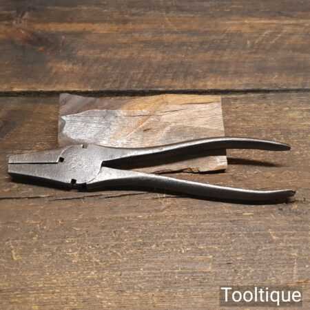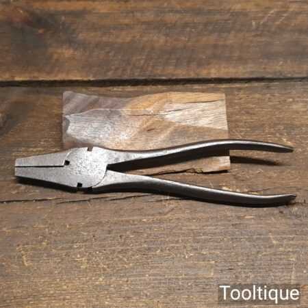 Vintage Button’s pattern 7” wire-cutting flat nosed pliers in good used condition.