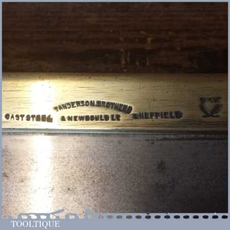 Vintage Sanderson Bros & Newbould 14” brass back bench saw with 10 tpi, fully refurbished and sharpened cross cut ready for use. Dating to around 1903.
