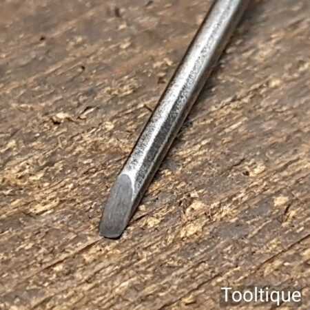The chisel has been checked to ensure the tang is seated properly and the handle is solid and fit for use. All refurbished chisels are water cooled during the sharpening & Flattening process to ensure the tempering is not affected.