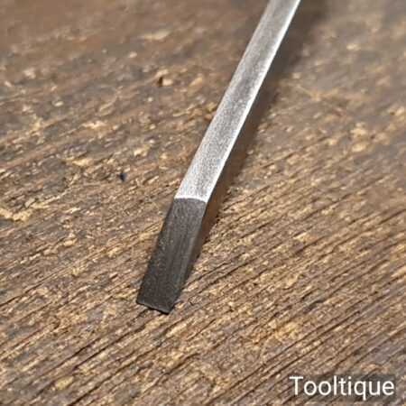 The chisel has been checked to ensure the tang is seated properly and the handle is solid and fit for use. All refurbished chisels are water cooled during the sharpening process to ensure the tempering is not affected.