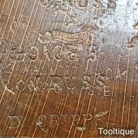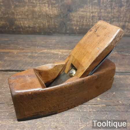 Vintage C. Nurse & Co, 182 Walworth Road, Maidstone carpenter’s beechwood smoothing block plane with dovetailed rosewood toe, in good used condition. Note: Deep scratch in the sole, resin treated and won’t affect its use. Note: This plane has been lapped flat and the iron and chip breaker have been fettled and refurbished ready for use