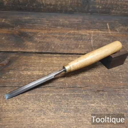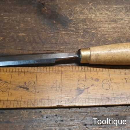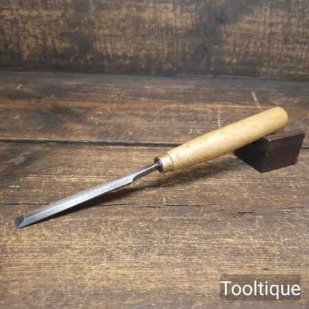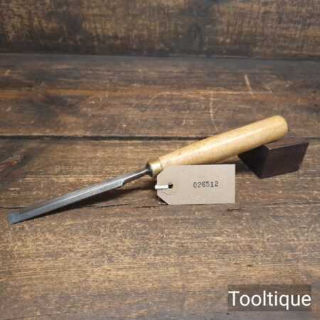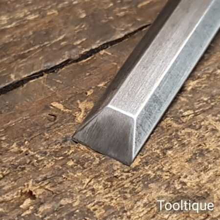 The chisel has been checked to ensure the tang is seated properly and the handle is solid and fit for use. All refurbished chisels are water cooled during the sharpening & flattening process to ensure the tempering is not affected