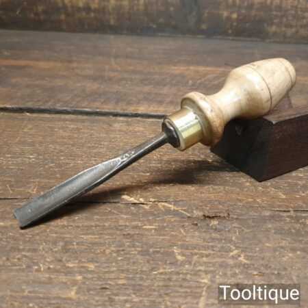 Vintage C. Shaw 7/16” straight woodcarving gouge palm chisel with hardwood handle in good used condition, fully refurbished sharpened and honed ready for use.