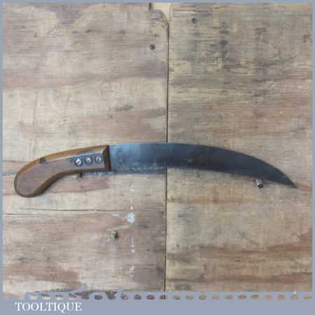 Vintage C. T. Skelton & Co gardener’s curved pruning saw with beechwood handle, fully refurbished and sharpened ready for use.